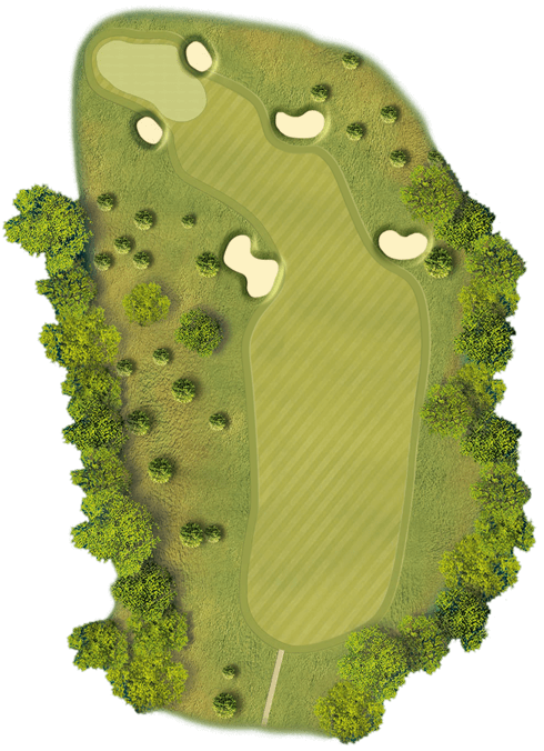 For the longer hitter a good drive up the left half of the fairway opens up the green and leaves a mid-short iron into the green. For the shorter hitter left hand side of the fairway also opens up the green. Correct clubbing on approach shot is key as anything short will be punished on the steep slope at the front of the green and long will leave a tricky downhill chip shot.